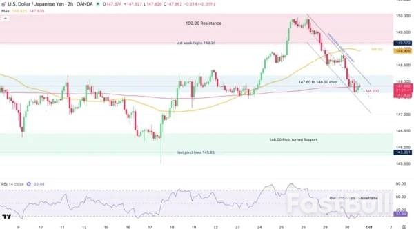 Pasangan ini berevolusi dalam saluran menurun tajam intraday, dengan harga sekarang menjadi jenuh jual. Dengan aksi harga yang ketat, akan mengejutkan jika melihat pembalikan tiba-tiba yang lebih tinggi (jika terjadi, cari penembusan saluran) – Aliran bearish secara keseluruhan dan prospek harian kuat jadi ingatlah itu. Aliran akhir bulan juga bisa ikut bermain – Perhatikan reaksi pada potensi penembusan MA 50-Hari (147,75).