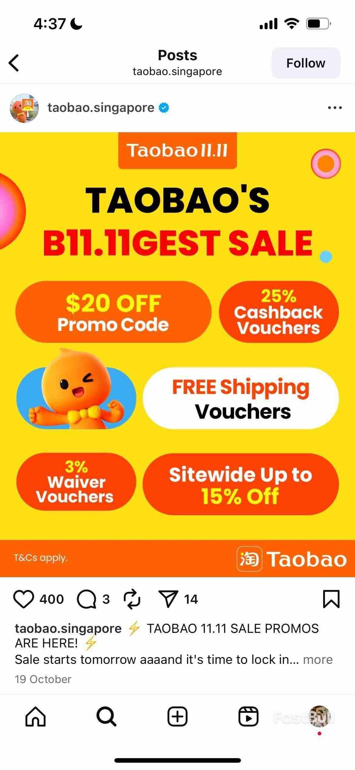 Alibaba's Taobao is advertising its Singles Day shopping promotions in Singapore.