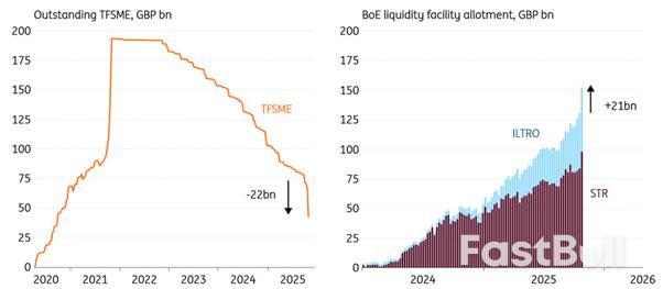 The sudden demand for liquidity was driven by record repayments of Covid-19 loans to encourage SME lending (TFSME). In the last week of October, banks repaid £22bn of these loans, way more than the regular amounts we've seen over the past year. The repayments almost exactly mirrored the demand for the BoE's liquidity facilities: the 1-week Short Term Repo (STR) facility and 6-month Indexed Long-Term Refinancing Operations (ILTRO). This makes the net impact on reserves negligible.